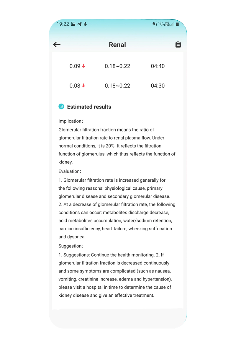 1. Suggestions: Continue the health monitoring. 2. If glomerular filtration fraction is decreased continuously and some symptoms are complicated (such as nausea, vomiting, creatinine increase, edema and hypertension), please visit a hospital in time to determine the cause of kidney disease and give an effective treatment.
